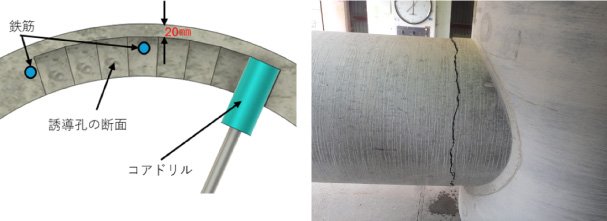 コアで正確に管を20㎜残存させ鉄筋を切りきるので地震時に応力を誘導孔に集中させ管口部を守ります。