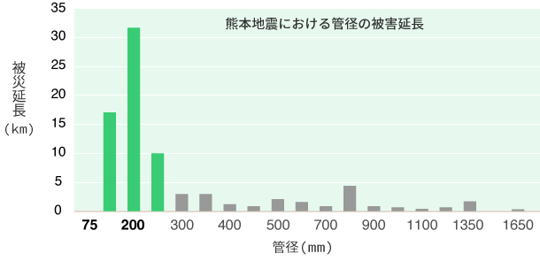 被災件数では小口径管が多いが、システム全体への致命的影響は中・大口径幹線の破損にあるといえます。