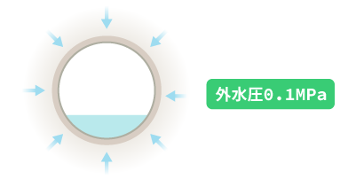 レベル2地震動が生じた場合でも、非開削で、大口径の既設管きょとマンホールの接続部を流下機能を確保できる構造に改良する工法です